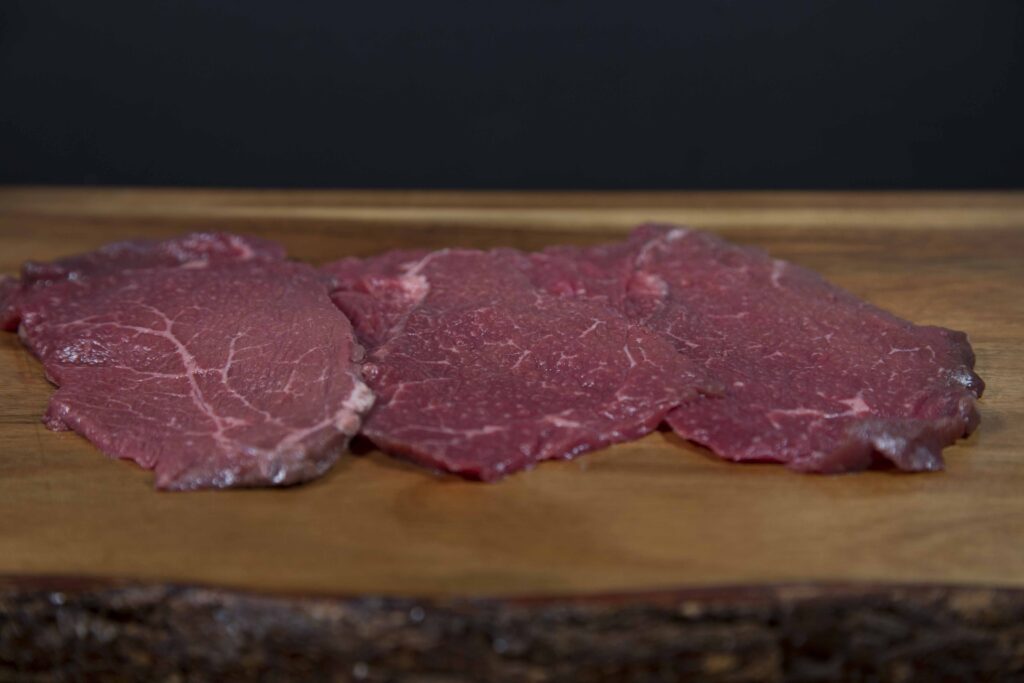– Una carne elaborada artesanalmente desde el cuidado de la res hasta el corte, realizado a mano, que para ahondar en terneza y favorecer la entrada de los condimentos en cocina realizamos a mano.